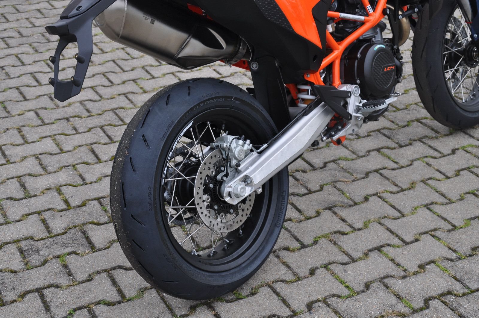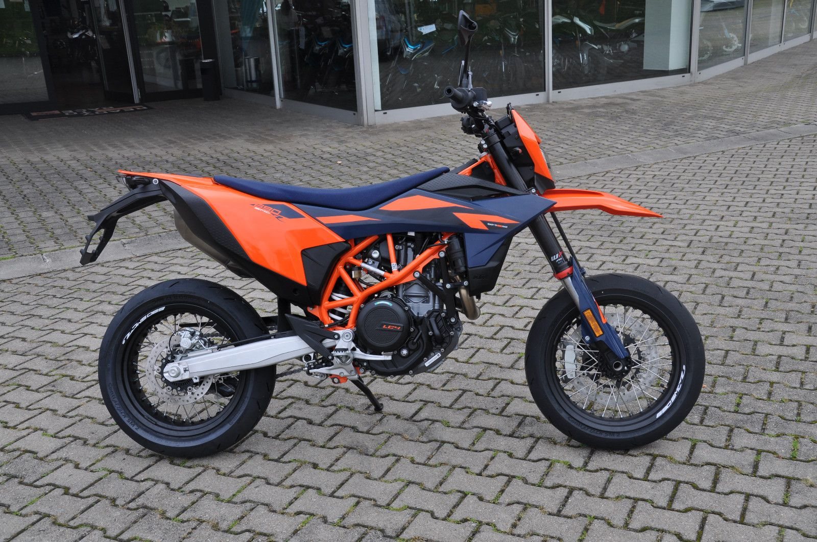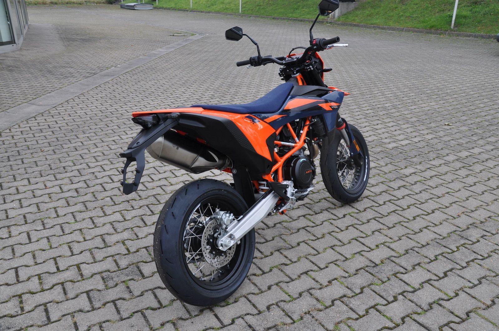 legt die Messlatte im Supermoto-Segment mit ihrem leichten Fahrwerk, dem legendären LC4-Motor mit 690 cm und ihrem ausgeklügelten Elektronikpaket noch einmal höher. Egal, ob du auf Bergstraßen oder deiner Lieblingsstrecke dicke schwarze Striche auf den Boden zauberst - du wirst mit einem fetten Grinsen und Adrenalin in deinen Adern in die Zukunft driften. Ihr Handling wird von der neuesten, voll einstellbaren WP APEX-Federung verbessert, damit du dich nur mehr auf die Straße vor dir konzentrieren und den Gasgriff voll herumdrehen musst.