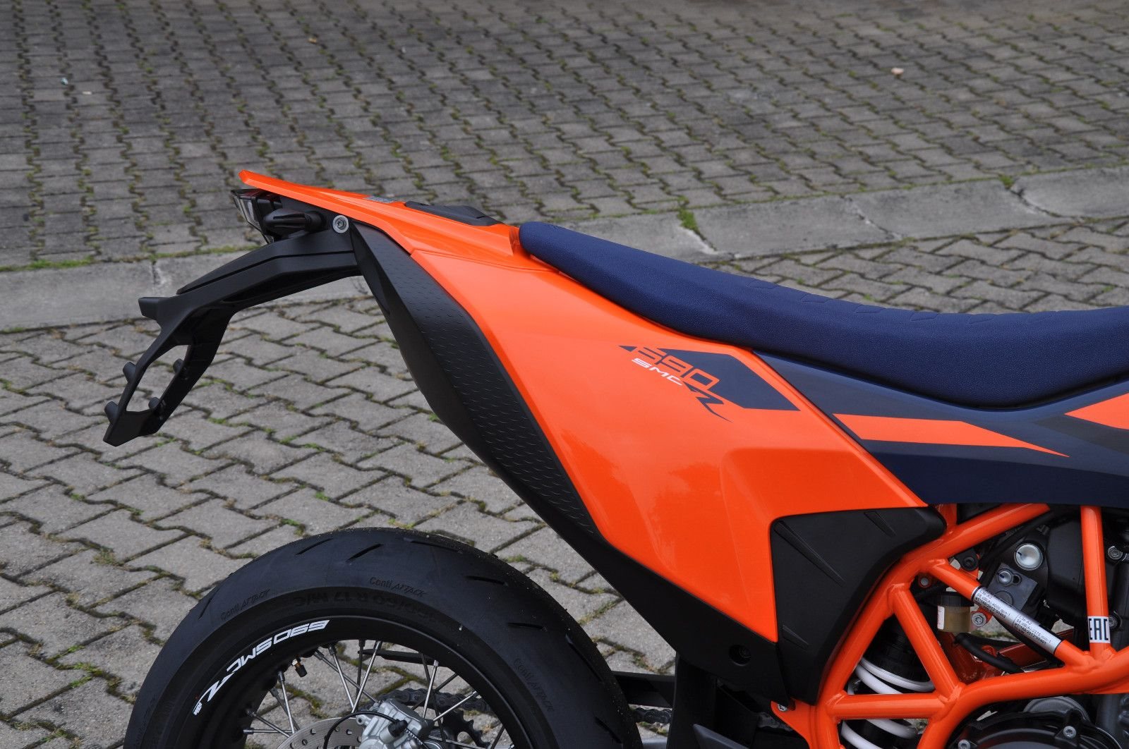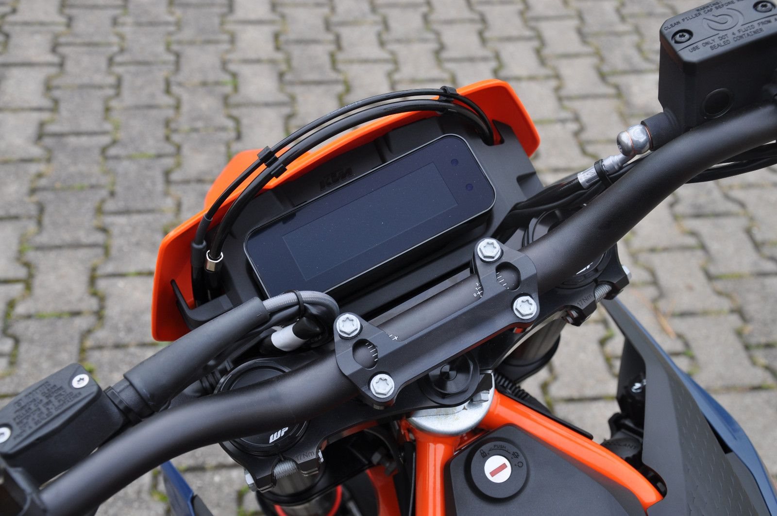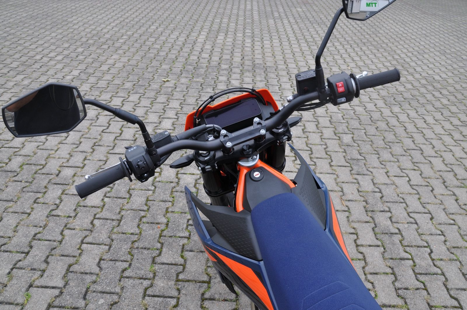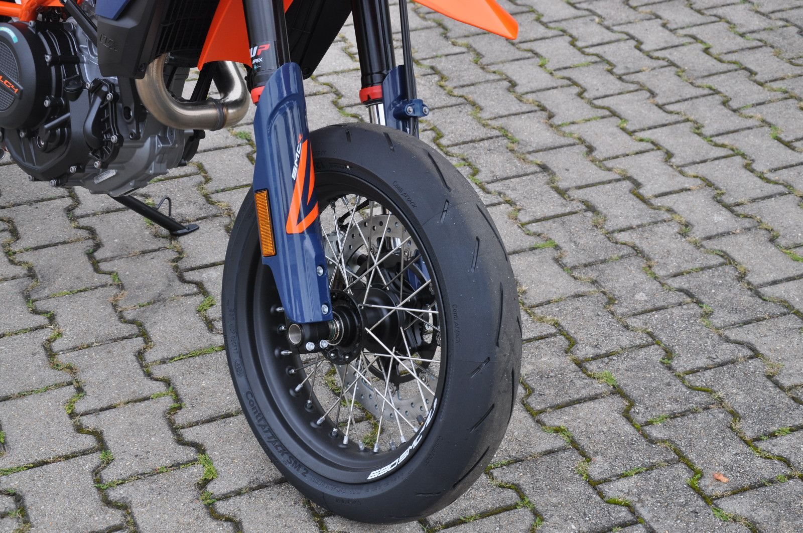 legt die Messlatte im Supermoto-Segment mit ihrem leichten Fahrwerk, dem legendären LC4-Motor mit 690 cm und ihrem ausgeklügelten Elektronikpaket noch einmal höher. Egal, ob du auf Bergstraßen oder deiner Lieblingsstrecke dicke schwarze Striche auf den Boden zauberst - du wirst mit einem fetten Grinsen und Adrenalin in deinen Adern in die Zukunft driften. Ihr Handling wird von der neuesten, voll einstellbaren WP APEX-Federung verbessert, damit du dich nur mehr auf die Straße vor dir konzentrieren und den Gasgriff voll herumdrehen musst.